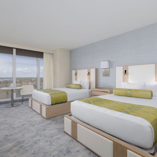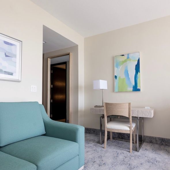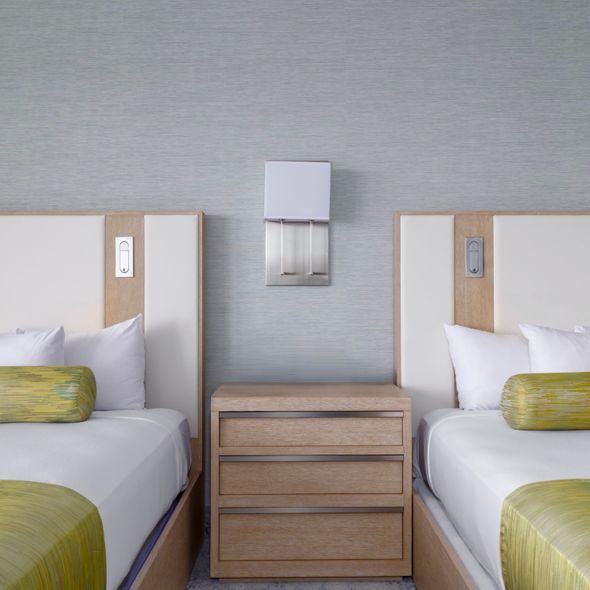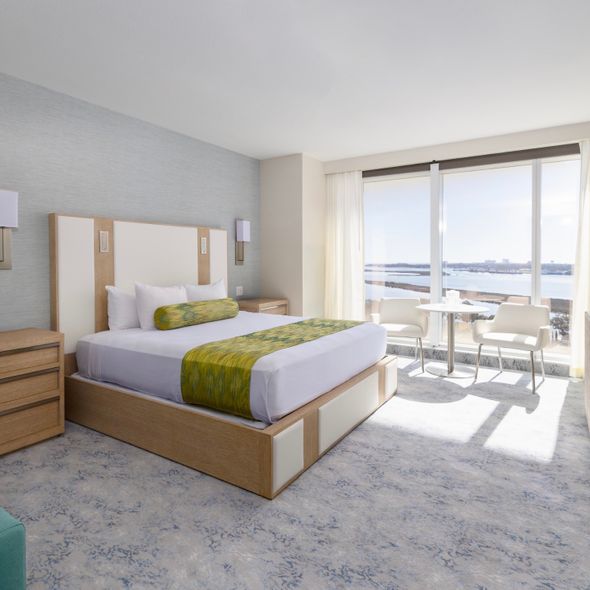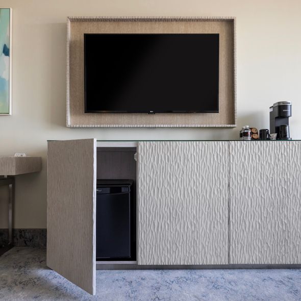 To celebrate its 10th anniversary offering hospitality, gaming, and innovation, the Scarlet Pearl Casino Resort launched an extensive makeover of its 300 guestrooms and suites. Beautiful views of the Mississippi Gulf Coast provided the palette of soft blues, bold greens, and sand tones. Bernhardt Hospitality provided a full custom package of casegoods and seating inspired by our award-winnning inline designs, including beds, desks, tables, mirrors, and more. The extensive redesign helped Scarlet Pearl achieve a place on USA Today's 10Best List for Best Casino Hotel in 2025.